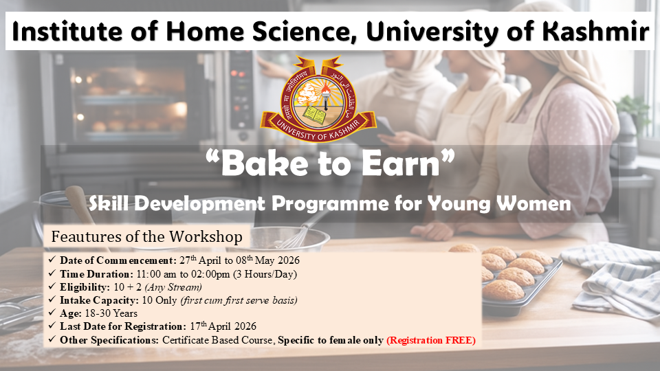 Established in the Year 1982, the Institute is actively involved in Teaching, Research and Extension activities. It has active academic and research collaborations with SKIMS, GMC, SKUAST and other Departments of the University. It has already conducted research on issues like Women Empowerment, Domestic violence against women, Nutritional Status of the Adolescent girls, Pregnant Women and Menopausal Women, Assessment of ICDS Programmes, Growth and Development of Children, Feeding Practices amongst Infants etc. The Institute has started campus placement and is involved in Gender Sensitization